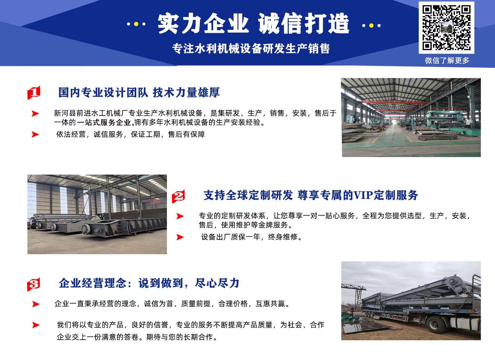 前進(jìn)水工優(yōu)勢:具有專業(yè)研發(fā)團隊,精湛的制造工藝,嚴(yán)謹(jǐn)?shù)臋z驗技術(shù),完善的售后服務(wù)